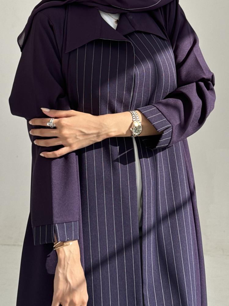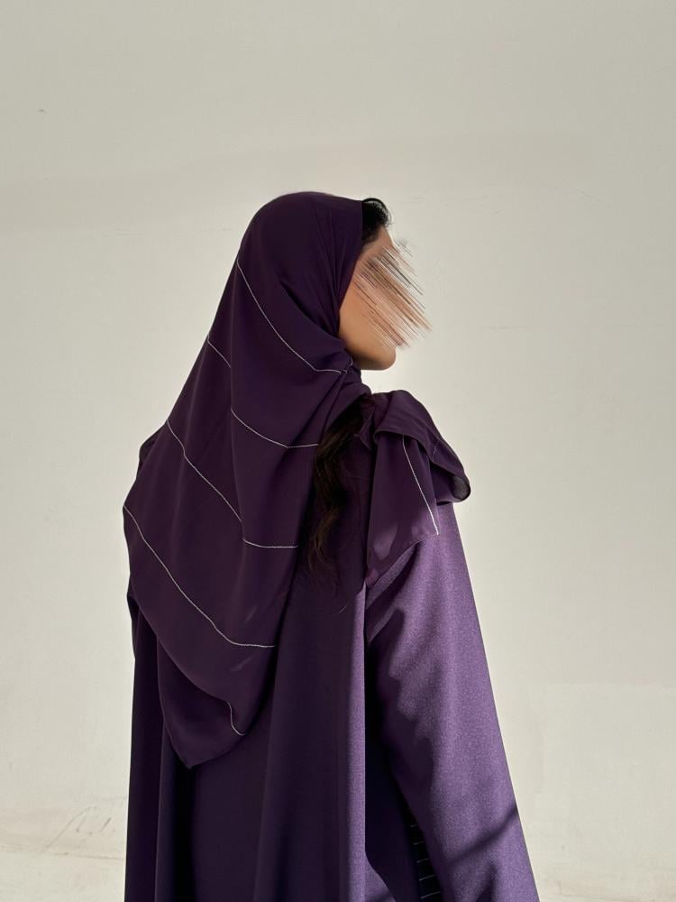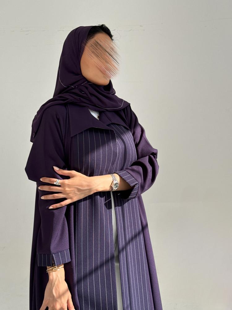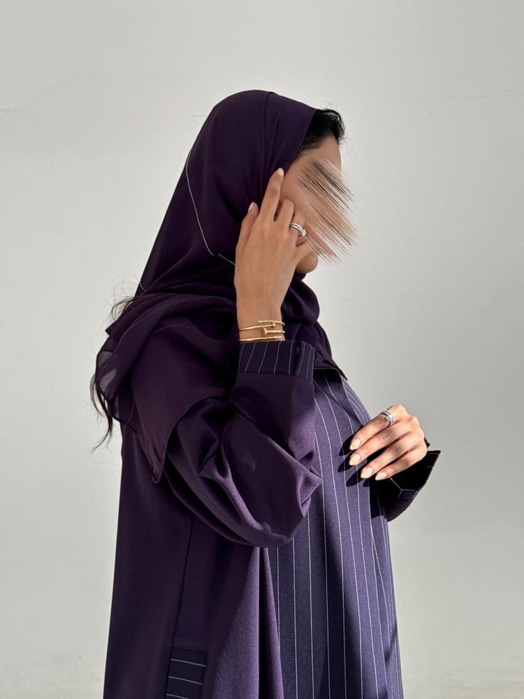 القماش كريب بنفسجي ساده + كريب مقلمالطرحه بدقات مكينهقصه كلوش ..المقصود بخيار الجيبحركة الجيب كامله وليس الفتحه بس .. ✨