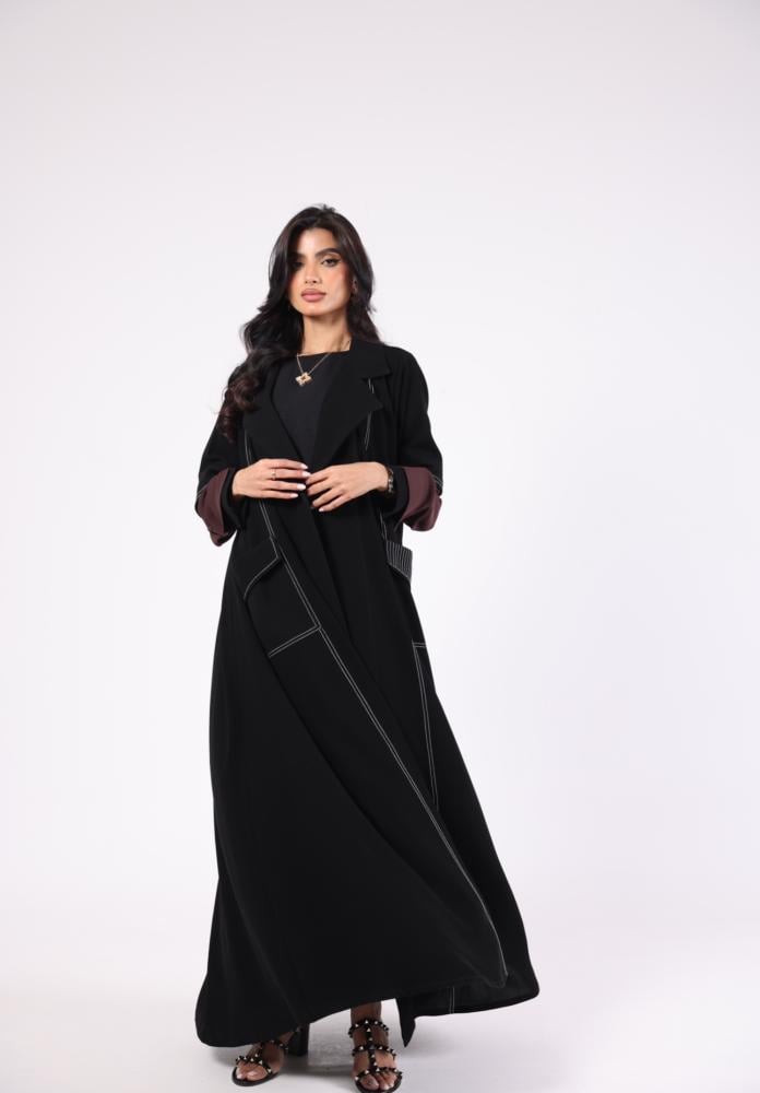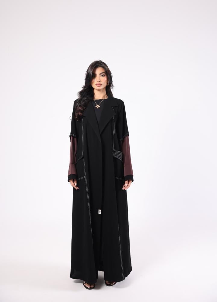 لون اسود مع اكمام بلون عنابي