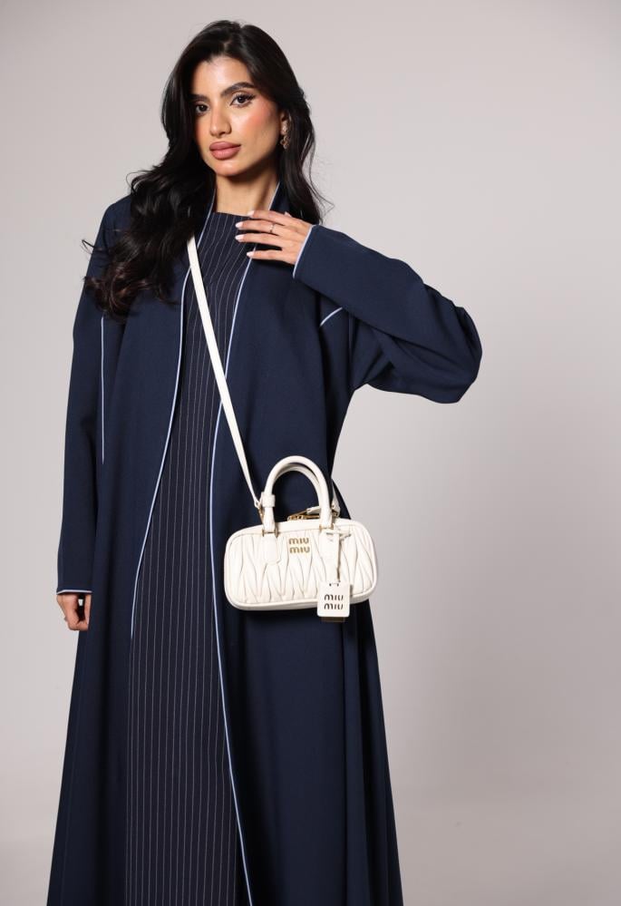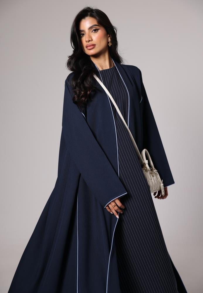قصتها كلوش وتحديد بلون سماوي يعطيها لمسة ناعمة ومرتبة.