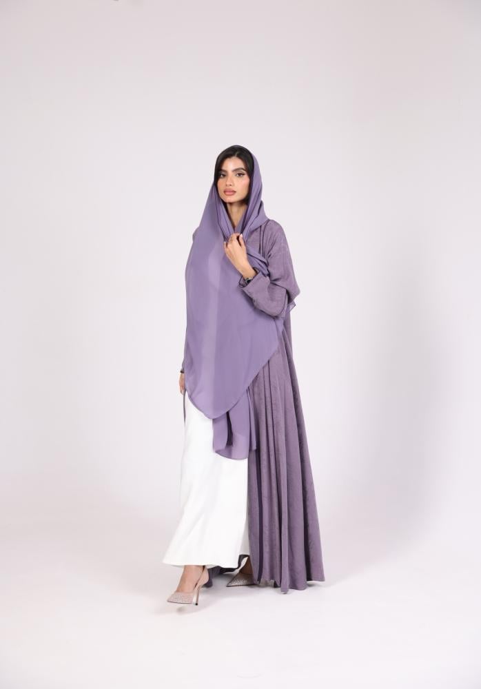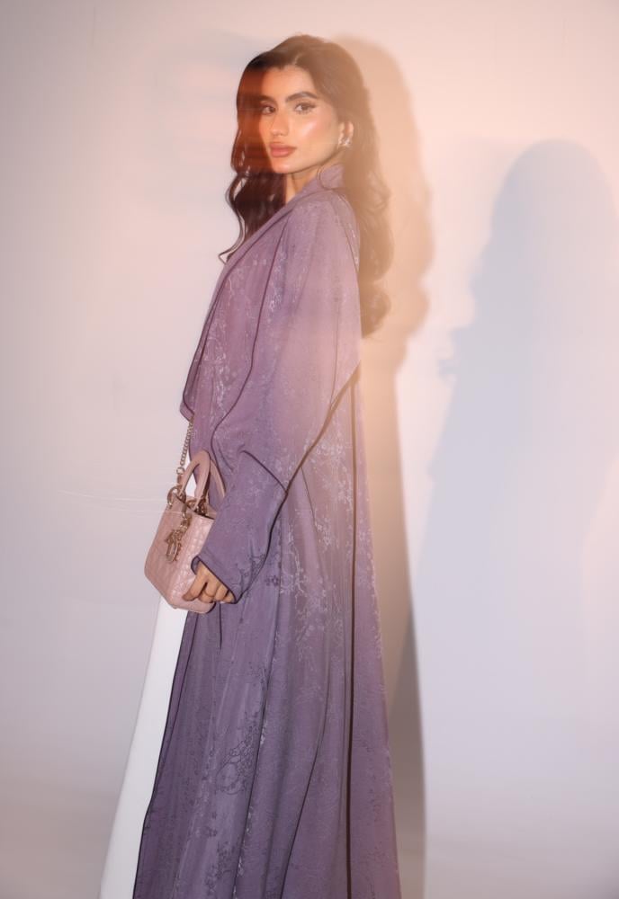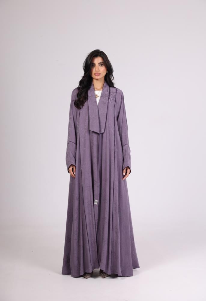 تميّزي بإطلالة أنيقة وراقية مع هذه العباية المصممة من قماش الحرير المغسول ، الذي يمنحك ملمسًا ناعمًا وانسيابية مبهرة في الحركة. تتميز بقصّتها الواسعة الكلوش والعملية التي تضيف لمسة ملكية لكل خطوة، مع تفاصيل ونقشة على القماش.