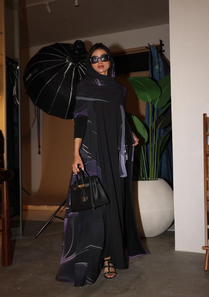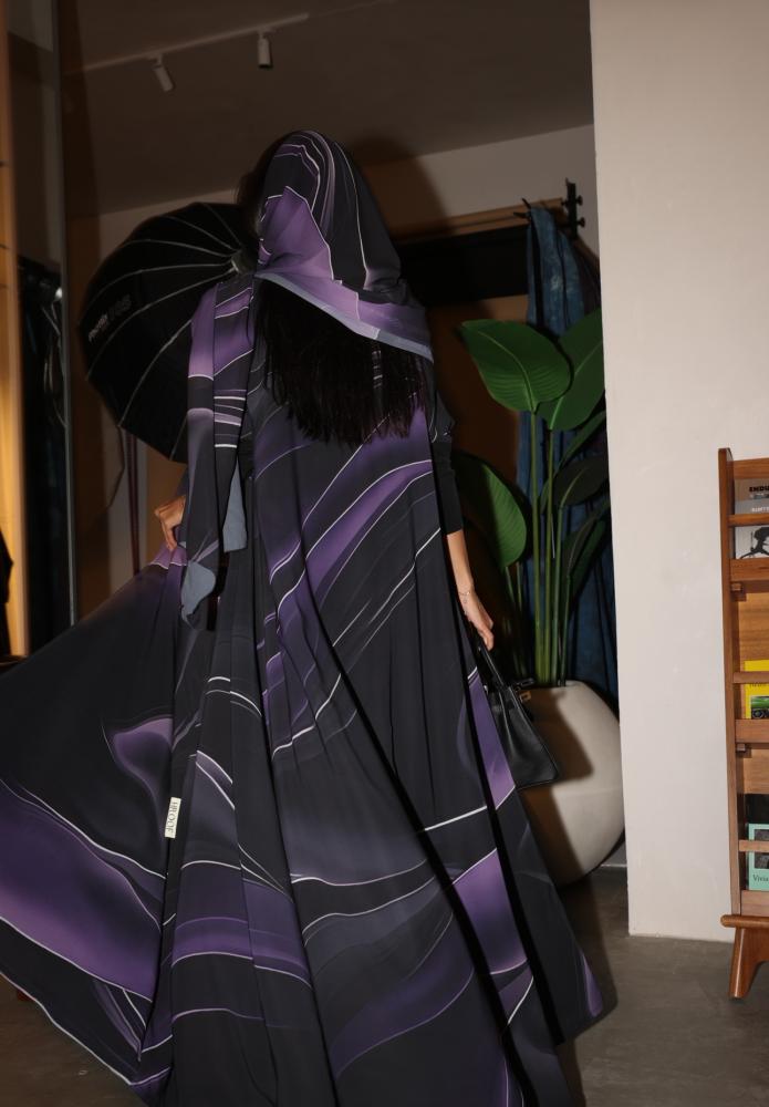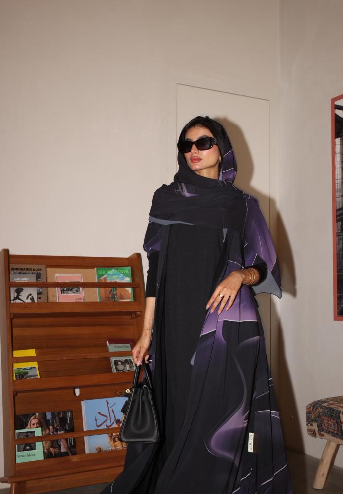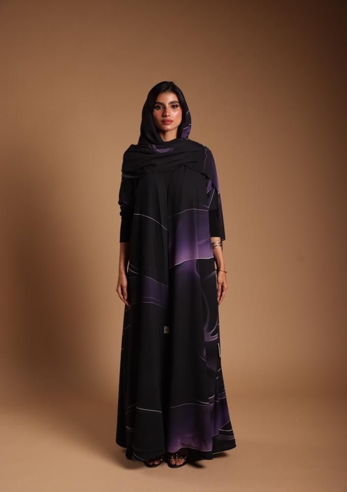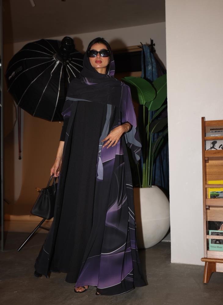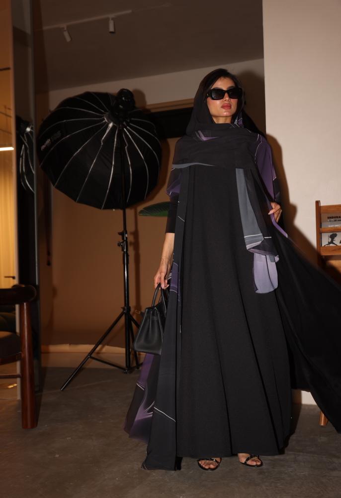 عباية دبل كلوش بقماش شيفون مبطن بلون اسود