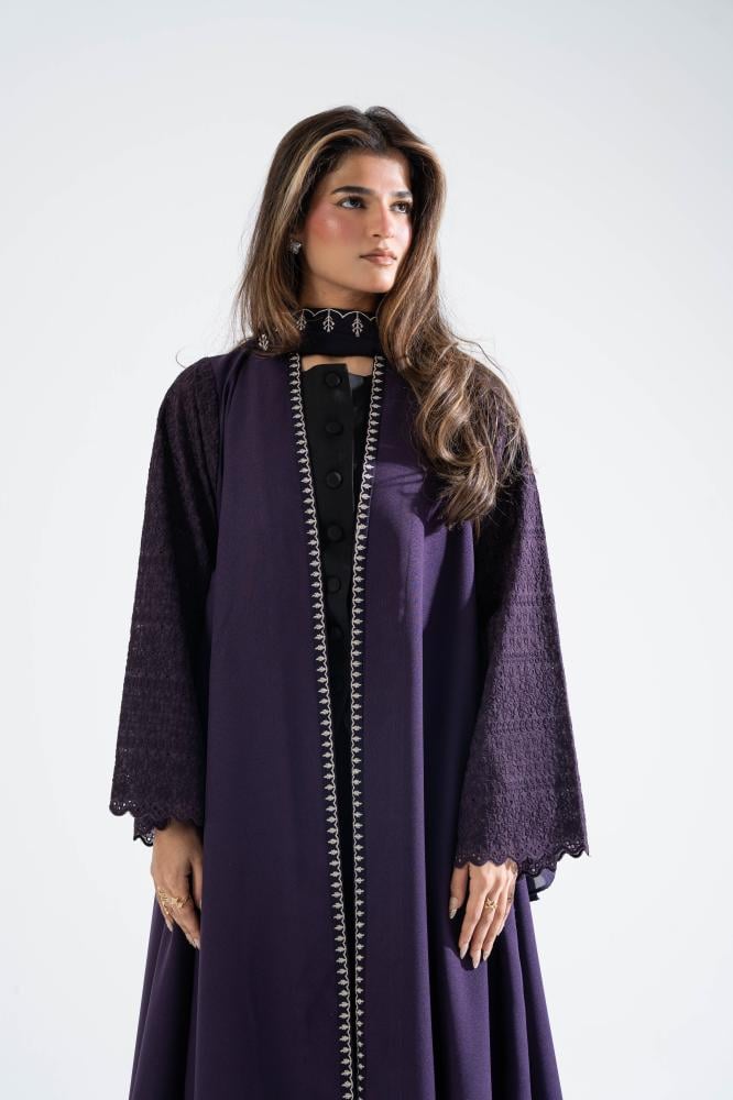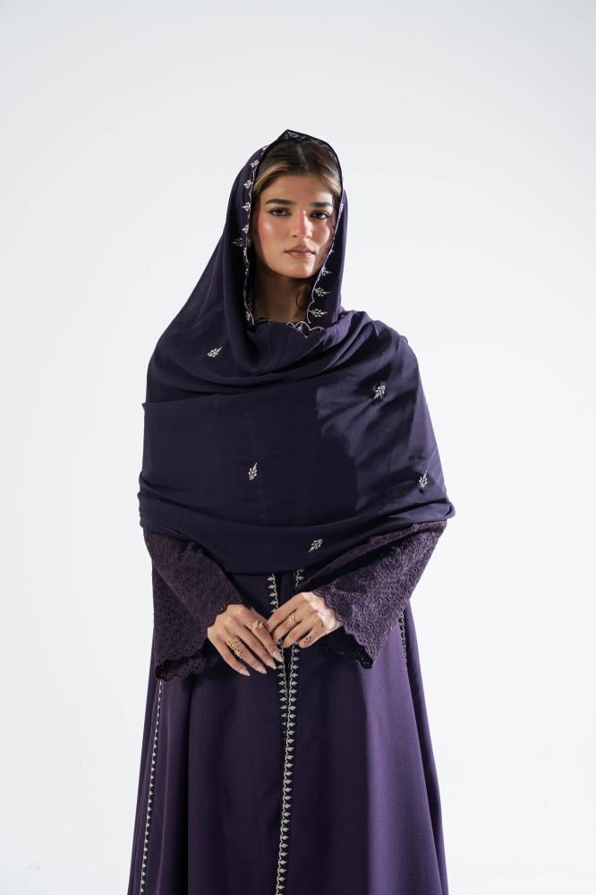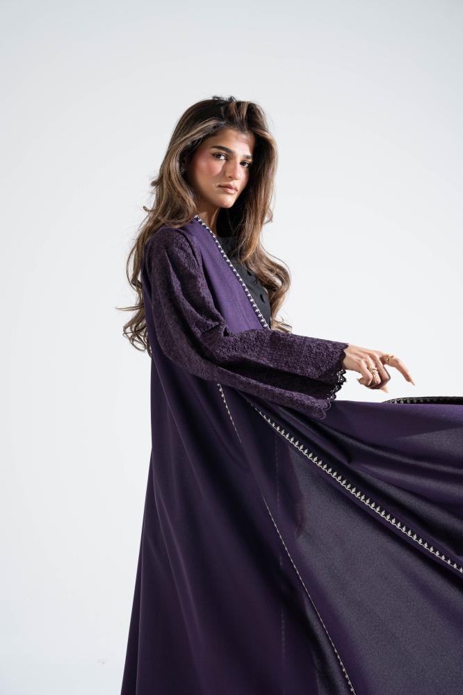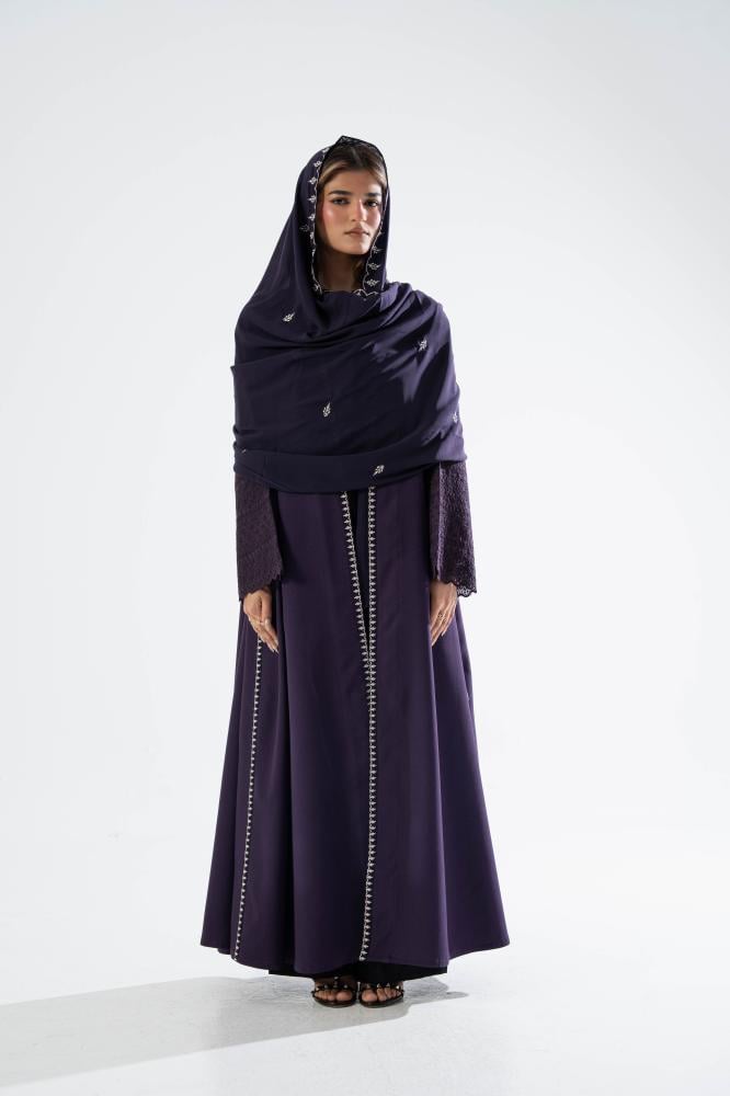كريب كتان بقصه دبل كلوش تطريز باطراف العبايه
