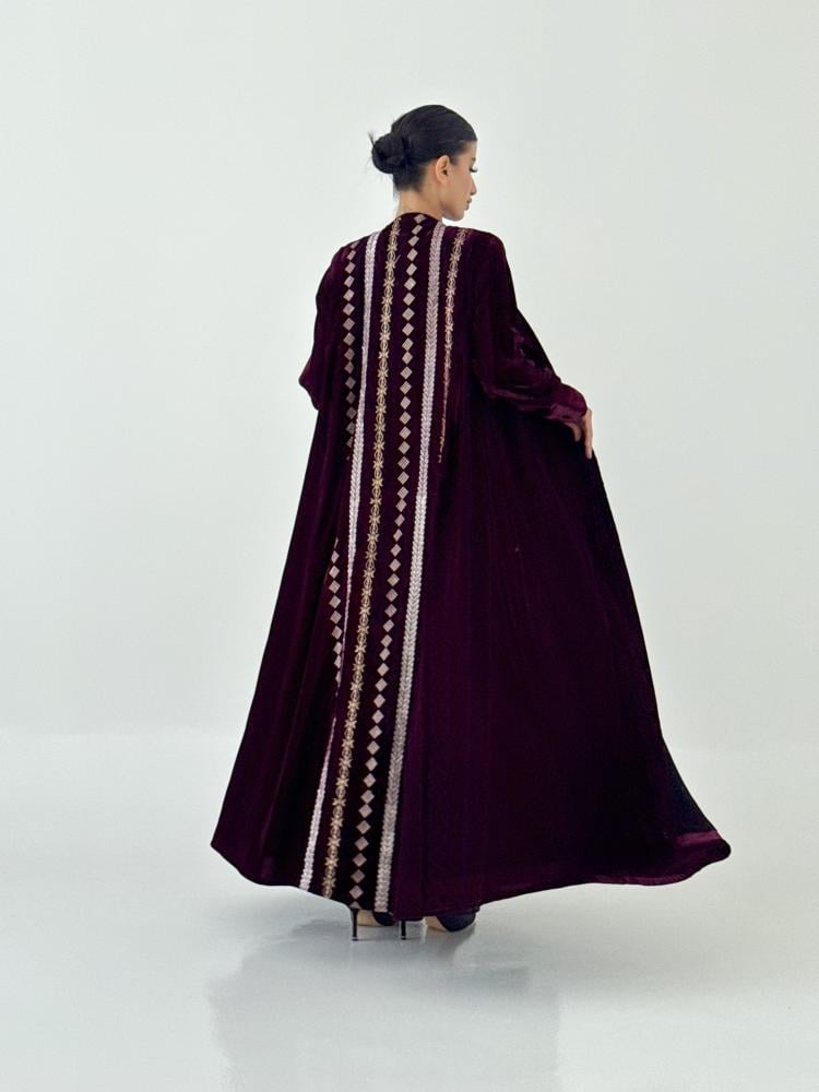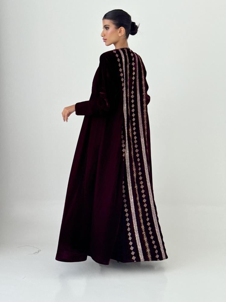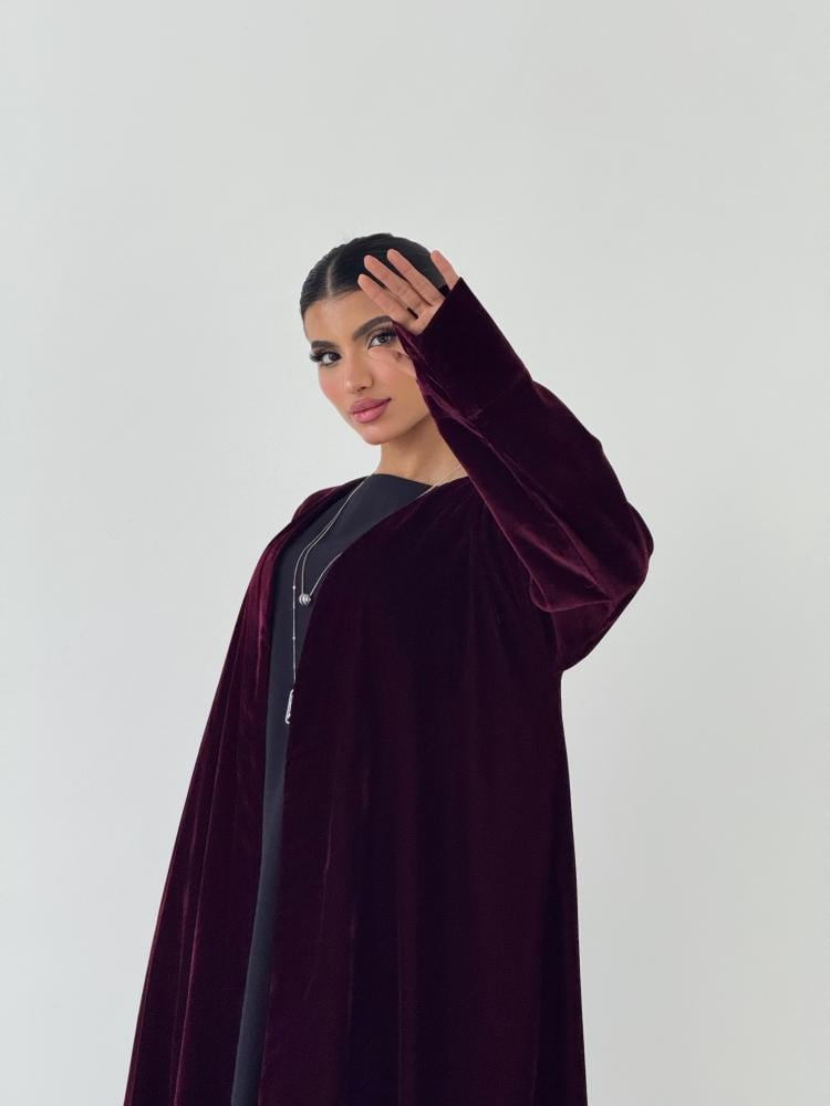 عبايه بقماش مخمل مبطن بقماش شيفون خفيف